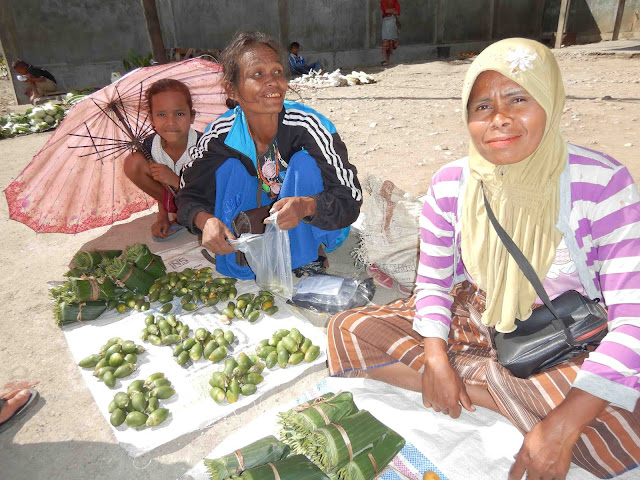 We left Fatumnasi and were headed to a nearby market so we took Mattheus' wife with us. The market was on the main road through the town and the traffic was chaotic so Aka dropped us off with her and said he'd find us once he drove through. (I know what you're thinking - how was he going to find us in this chaos? Don't worry - we were the only 'bule' (white people) there. He only had to ask people and everyone would have pointed to where we were!)