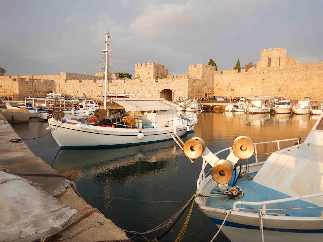 We had time to explore old Rhodes Town properly and I had forgotten what a seriously stunning town it is. The old town is enclosed by a huge fortified wall that originally had a moat around it. The moat is now a wonderful walking track. There's a stage part way along it, below the Bastion of St John, and John found it to be a great place to practice karate early in the morning when it was cooler and not many people were around.