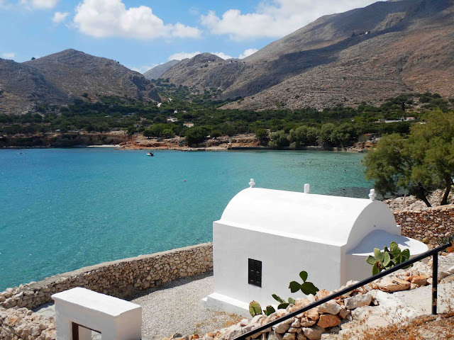 A couple of times we went to the nearby beaches of Ftenagia and Pondamos for lunch. It was only a 10 minute walk across the stony landscape to a Ftenagaia, a gorgeous beach with one solitary restaurant. JK and Val have been going here for years and know the owner well. The turquoise and blue water is stunning.