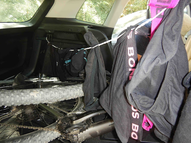 Before we left though, we had to get our washing out of the car. We've come up with a new way to dry washing when we have no sunny place to dry it on - we park the car in a warm place, crack the windows and string the washing line inside. It works brilliantly, except for when the bike is in the car too. We then get a bit of bike grease on our clothes!