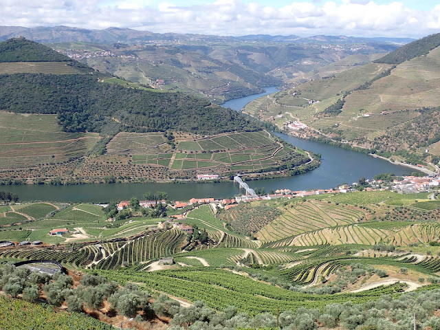 The Douro River wound its way gently through the vineyard-chequerboarded