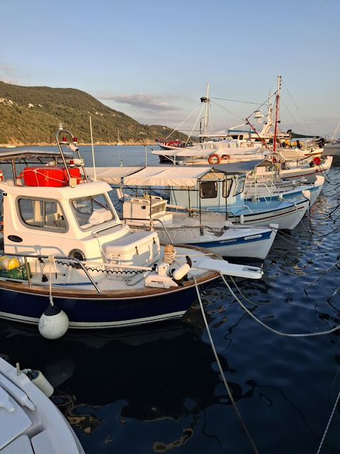 One thing to do at Mytikas is rent little boats. They're not very big or very powerful, so you don't need a licence. The people who ran the boat rental place were lovely. The son had spent five years in Melbourne so we had a bit to talk about.